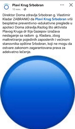 Povod sukoba je objava „Plavog kruga Srbobran“ (citirana sa njihovih društvenih mreža) da je direktor „ZABRANIO“ besplatne preventivno-edukativne preglede u apoteci Doma zdravlja, uz tvrdnju da je razlog to što dr Gazepov „izražava neslaganje sa radom“ direktora „zbog maltretiranja zaposlenih i većinom stanovnika opštine Srbobran koji ne mogu da ostvare zakonom zagarantovana prava za adekvatno lečenje“.
